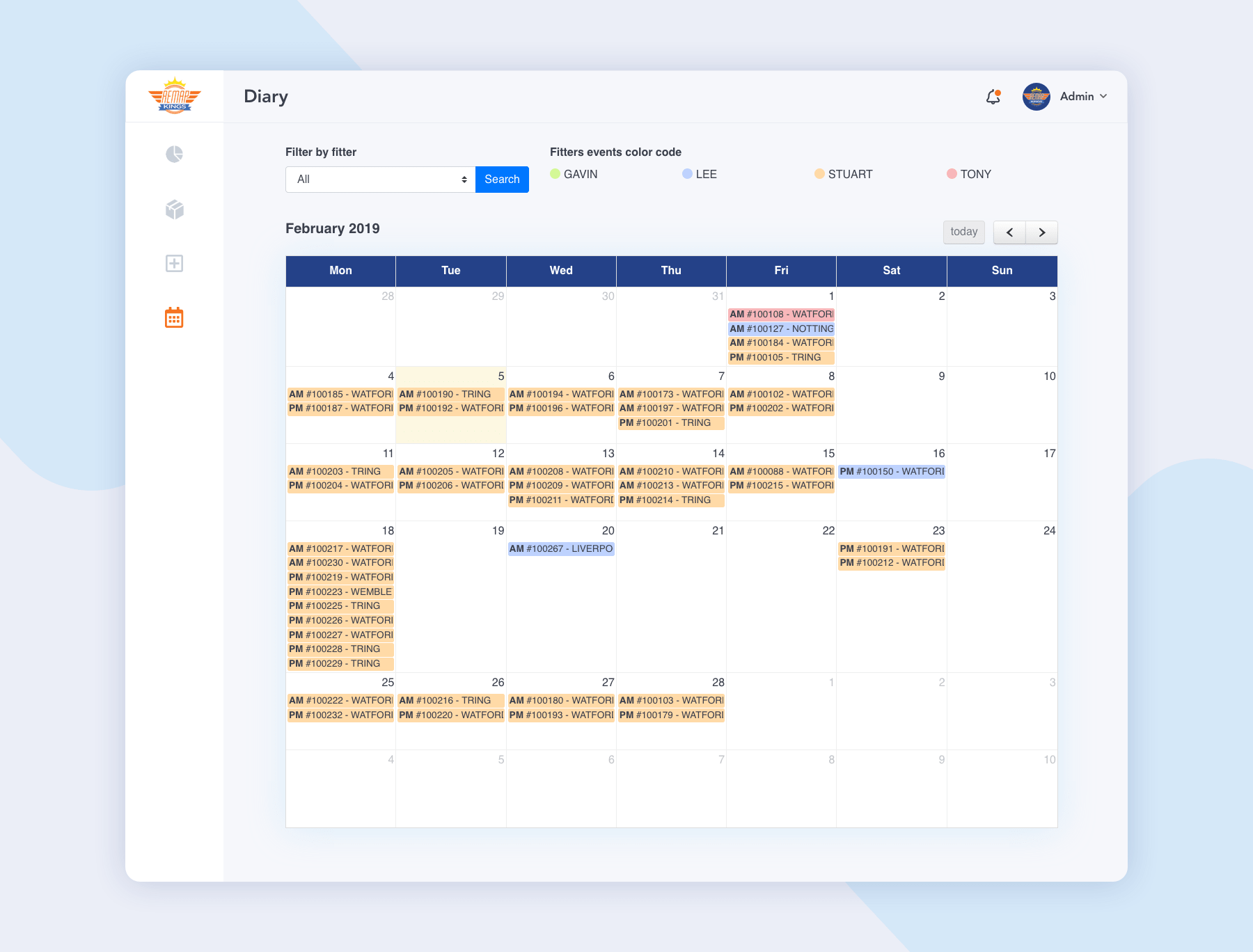 A customer can get in touch with Remap Kings and ask to change the installation date. To do this, the admin can enter the diary page and change the requested slot using the drag-and-drop facility.