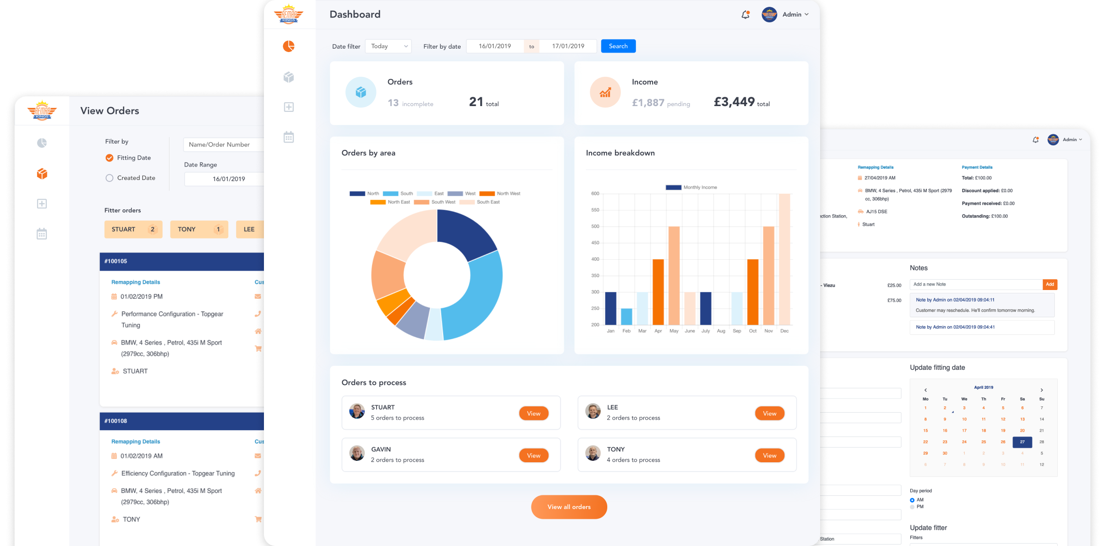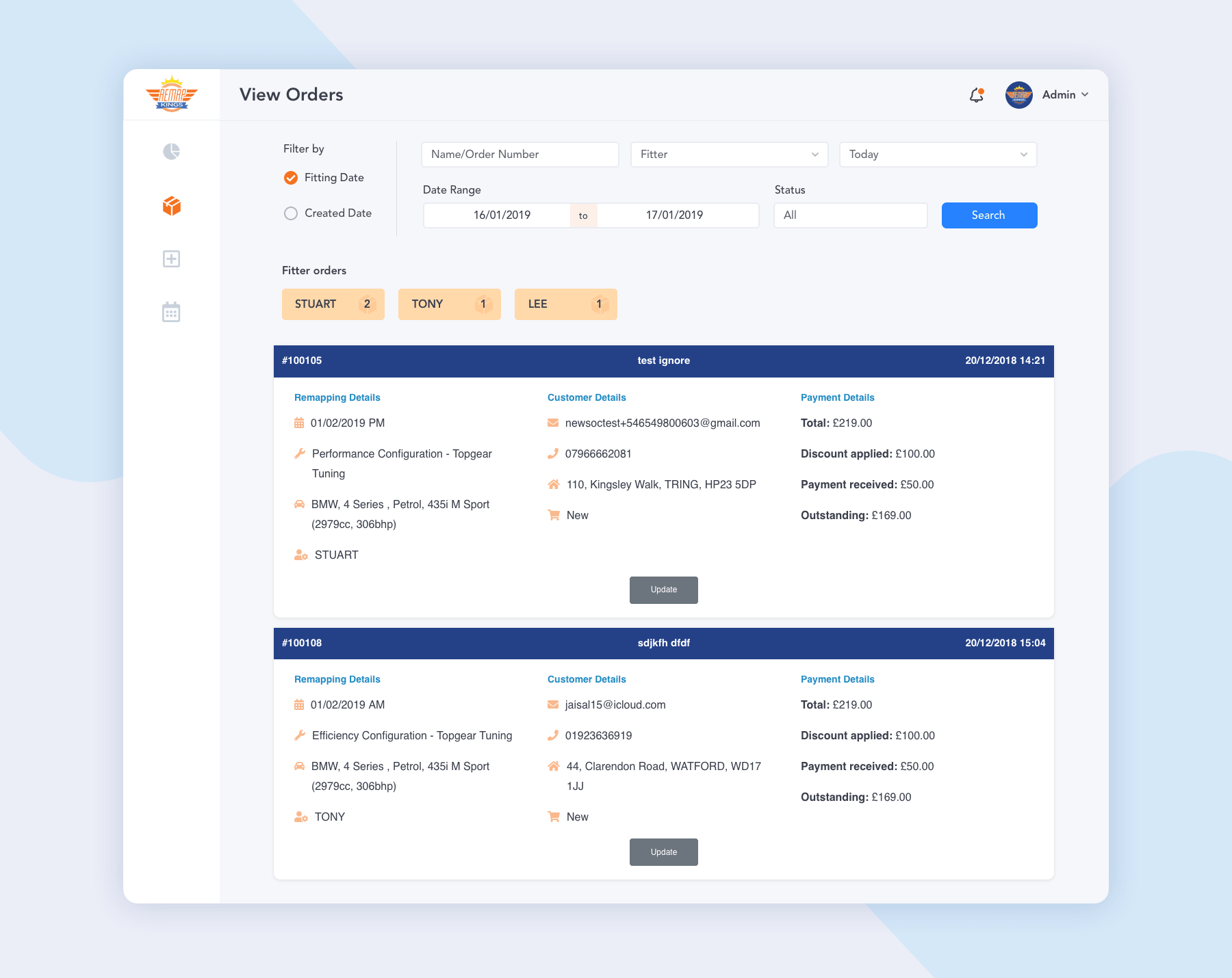 Remap Kings operates all over the UK remapping cars. They wanted a Portal to allow Fitters and Admin users to view orders via various filtering options.