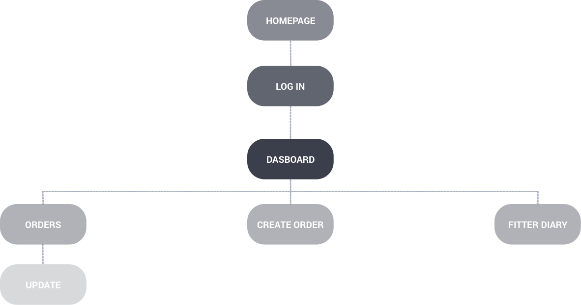 Both admins and users agreed to have four initial sections: Dashboard, View Orders, Create Order, and a Diary page to enhance order visibility from a calendar.