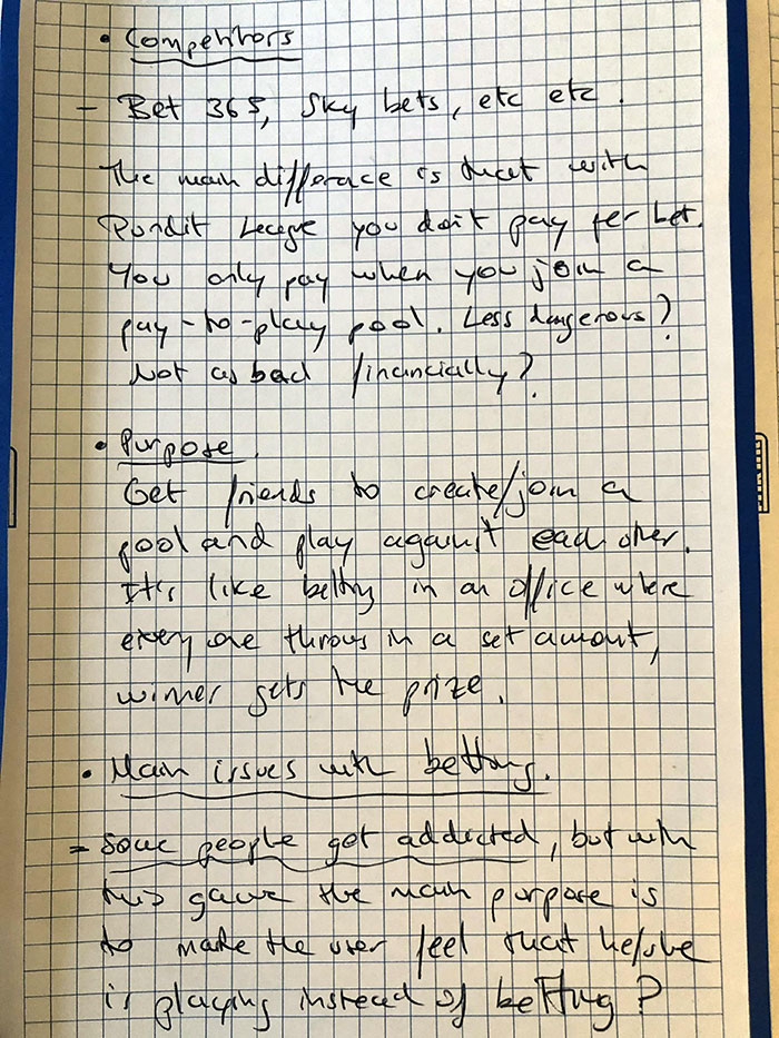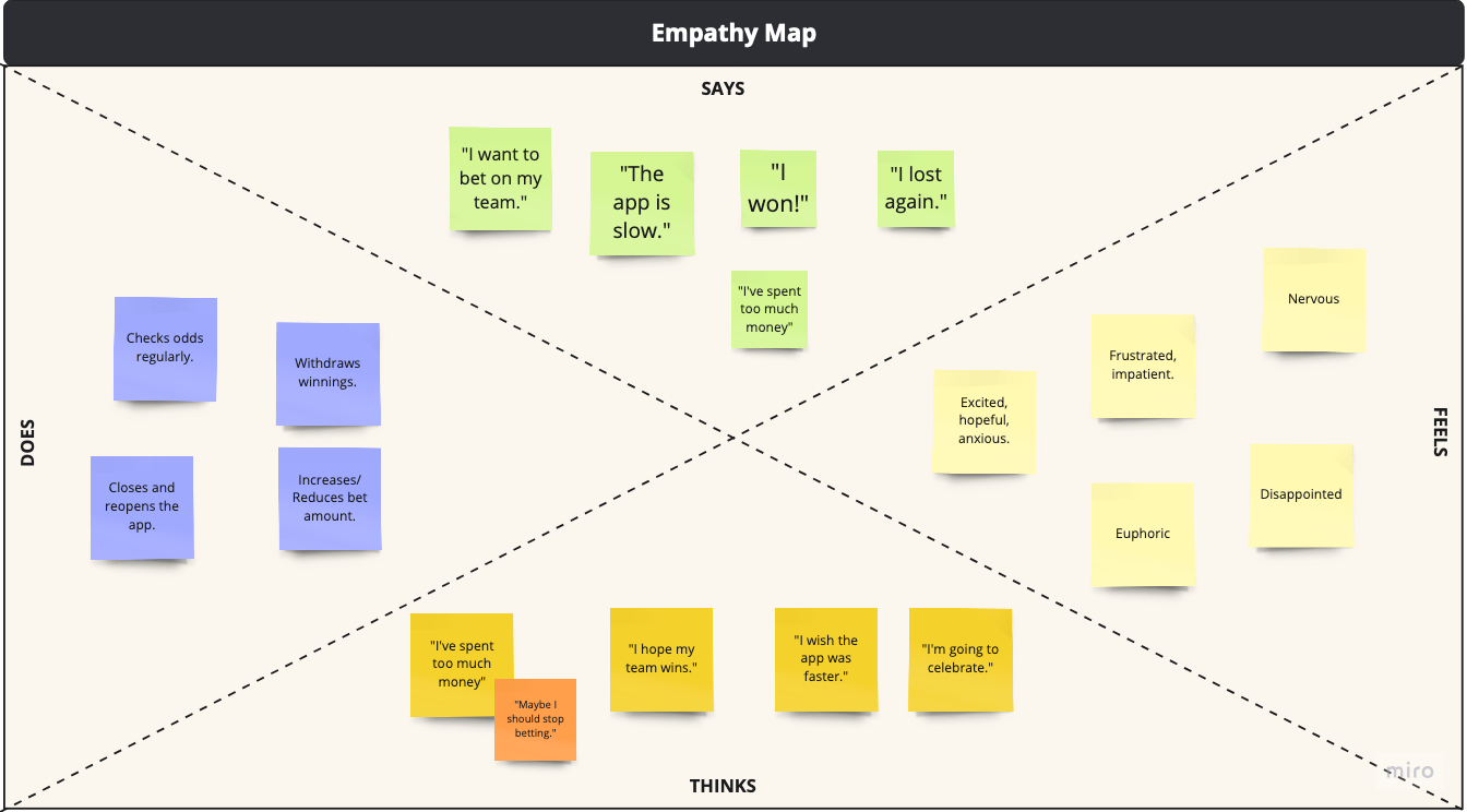 I started by gathering key business requirements and conducting competitor research. To gain firsthand experience, I also signed up for a few betting apps.